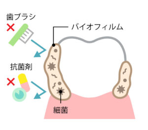 このバイオフィルムの中では、虫歯菌や歯周病菌が活発に活動しています。