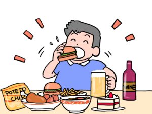 寝る前にラーメンやお菓子など、糖質を多く摂ると、