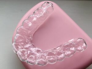 寝ている間に装着し、歯や顎関節への負担を軽減します。